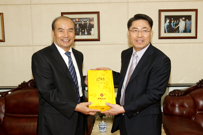 北京首都体育大学党书记兼校长 Hong-kang Lee 与本协会总裁李荣基交换纪念品