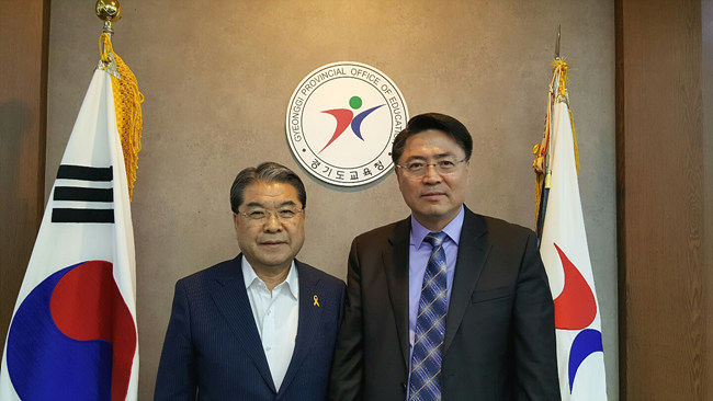 Young Kee Lee - the President of the World Recreation Educational Association (WREA) met Jae Jung Lee, the Superintendent of Gyunggi Province (former deputy prime minister of unification) and discussed various educational topics.